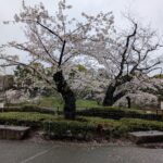本日7日目、昨日の嵐ほどではありませんが、今日も雨です。今朝は、花筏にはなっていませんでした。 オオシマザクラは、もう満開を過ぎて、半分以上散って、緑の葉が目立つように。 美守り隊のテント前で皆さんが良く写真を撮っている風景が、こちら↓