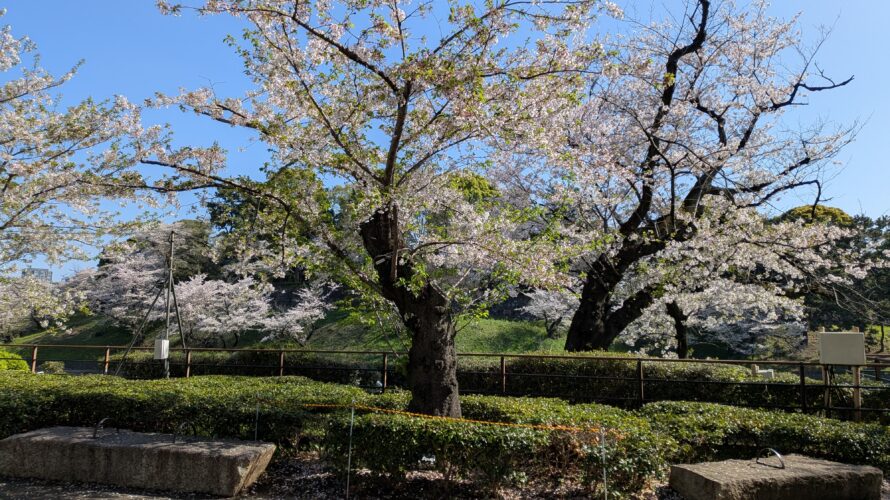 美守り隊テント前の桜も、だいぶ葉桜になって来ました。今日が、ライトアップ最終日。美守り隊の活動も今日までとなります。千鳥ヶ淵緑道の桜は、だいぶ散ってきましたが、お濠の対岸(北の丸公園側)の桜は、満開でまだ今日は、散らないかと思います。 倒木の所は、お濠側が一部通行止めのままですが、右側をお通り下さい。また、今日は一方通行では無いようです。