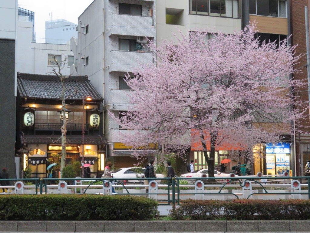 おまけ、神田須田町老舗蕎麦屋まつや前の江戸彼岸桜が満開。