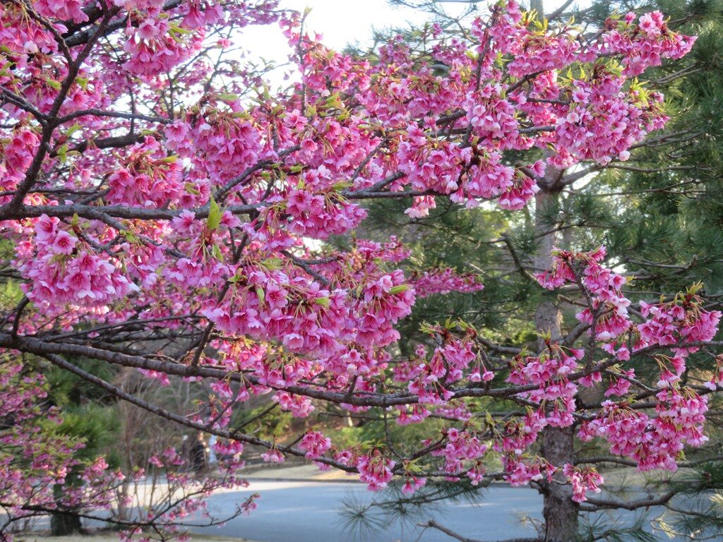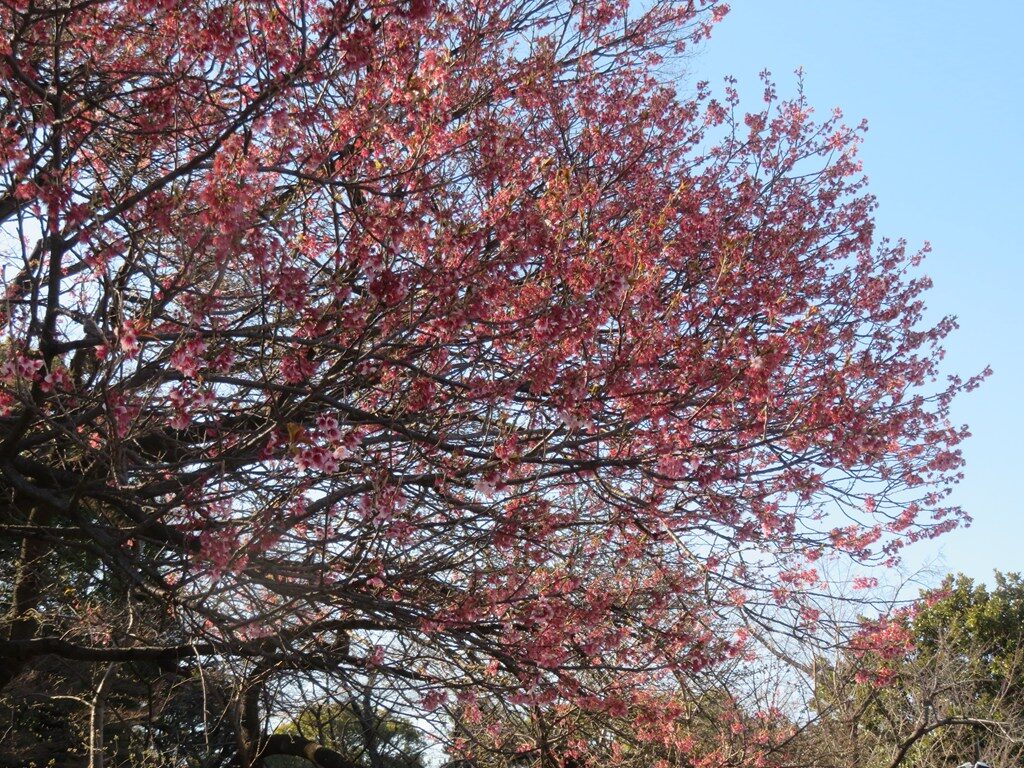 1枚目志那実桜、2枚目寒緋桜、3枚目琉球寒緋桜、4枚目椿寒桜