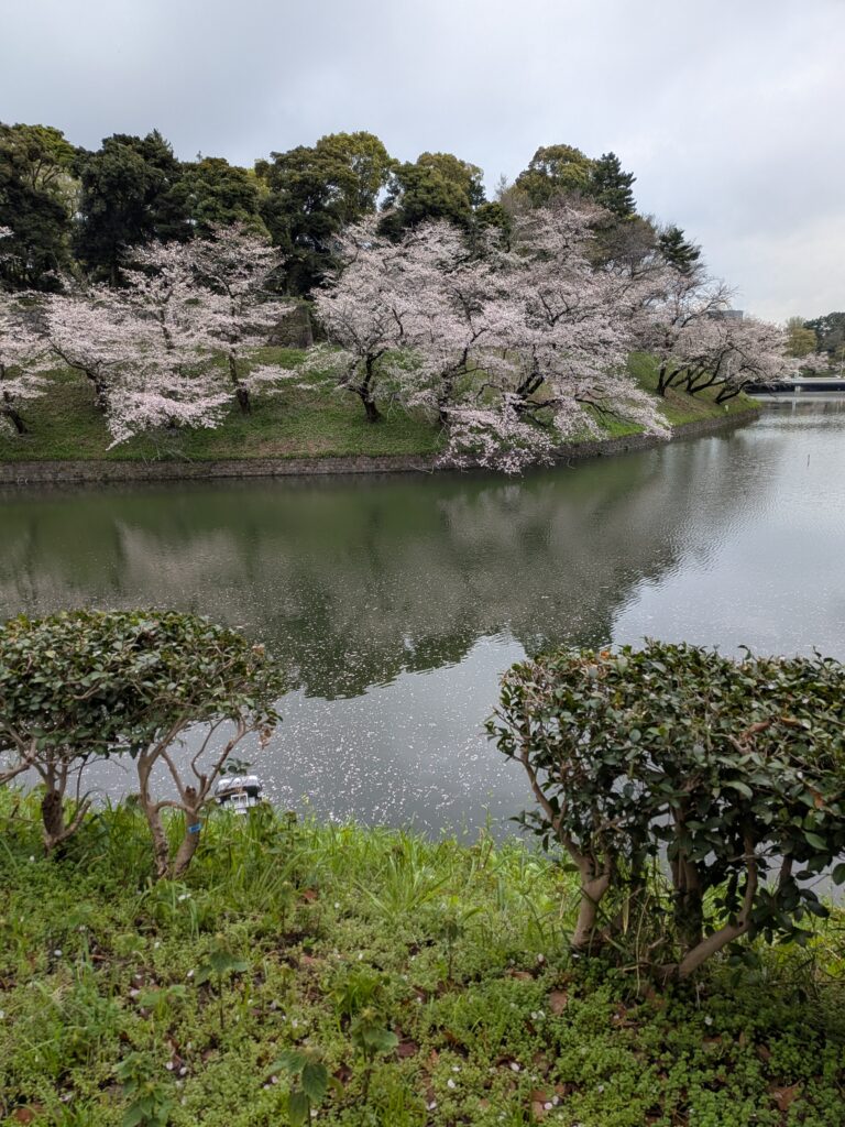 - 本日7日目、昨日の嵐ほどではありませんが、今日も雨です。今朝は、花筏にはなっていませんでした。