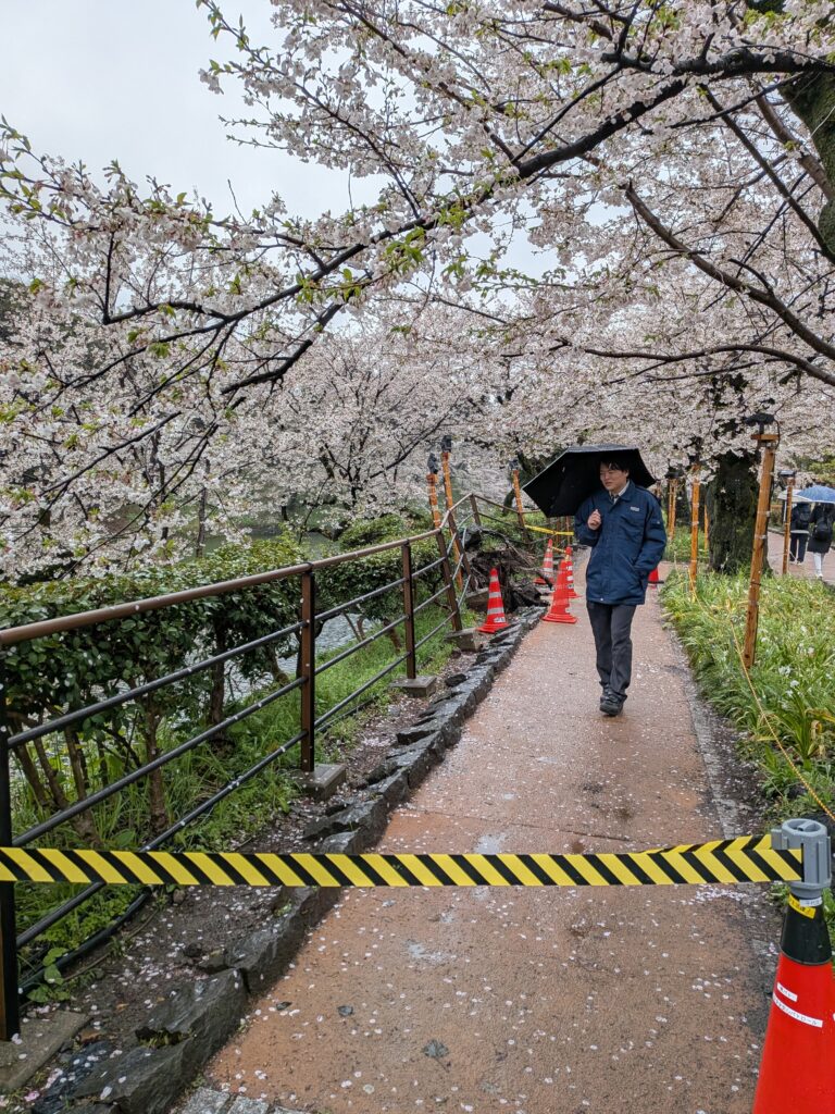 千鳥ヶ淵緑道は、柵の向こう側(お濠側)は、環境省(国)の管理、柵の内側は千代田区の管理。