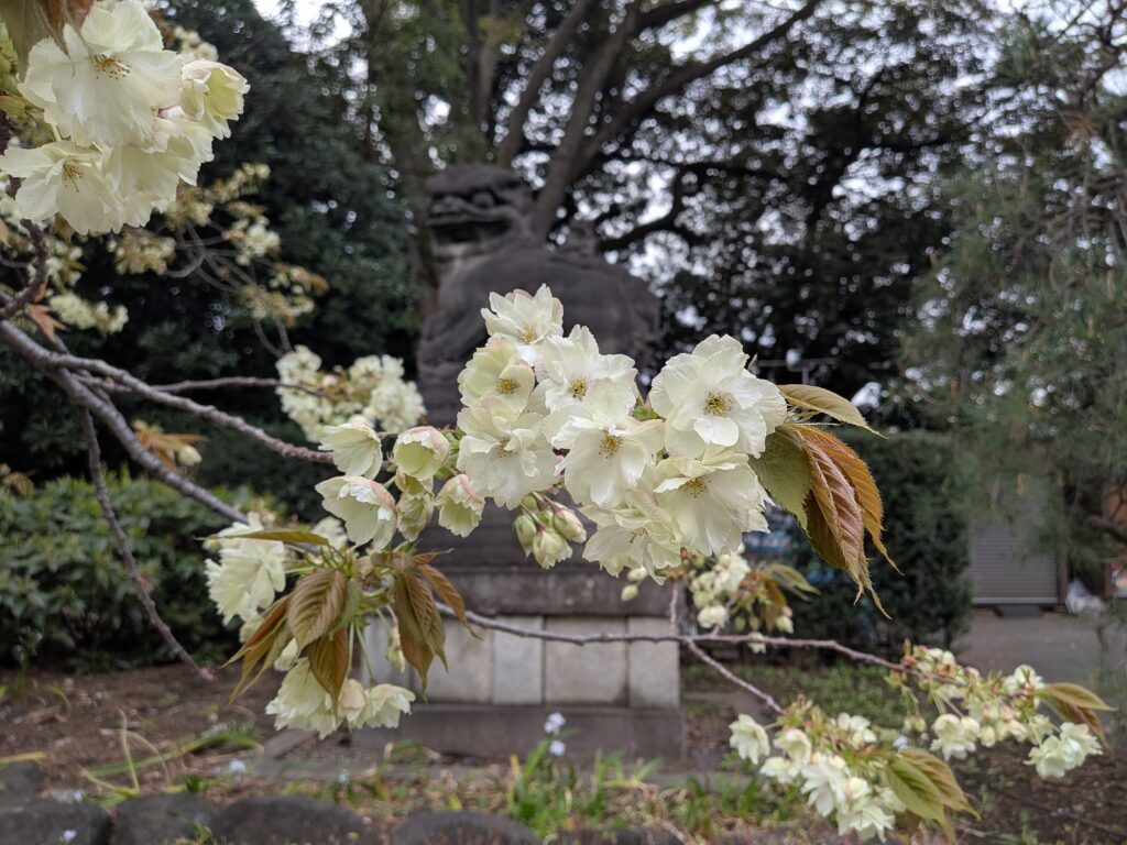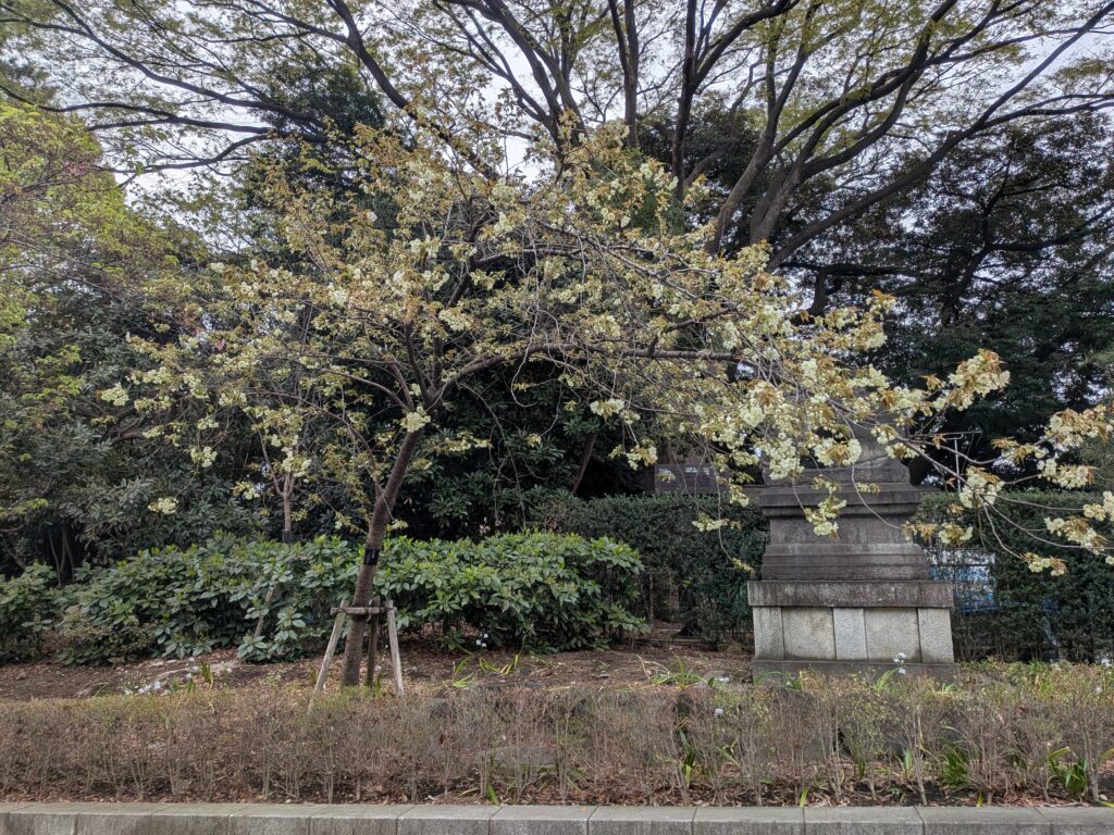 今日は、靖国神社の大鳥居近くの鬱金桜が咲いてます。染井吉野より少し遅く咲き始める八重桜です。花の色が黄色い色で、とても珍しい桜です。ぜひ、ご覧になって下さい。